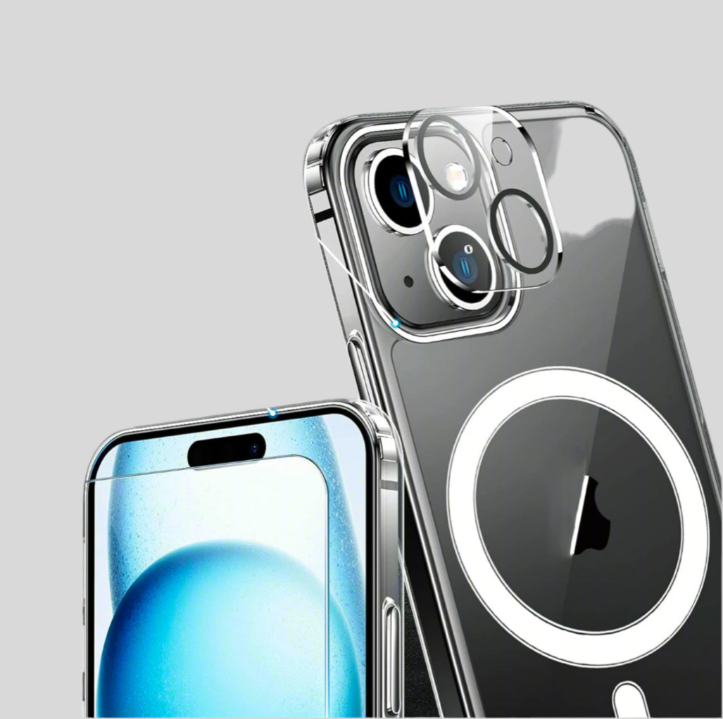 Get complete protection for your phone with 3 in 1 Phone Protection. Not only does it safeguard your phone's screen and camera lens, but it also includes a MagSafe phone case for added durability. Keep your phone safe from scratches and cracks with this all-in-one solution.
